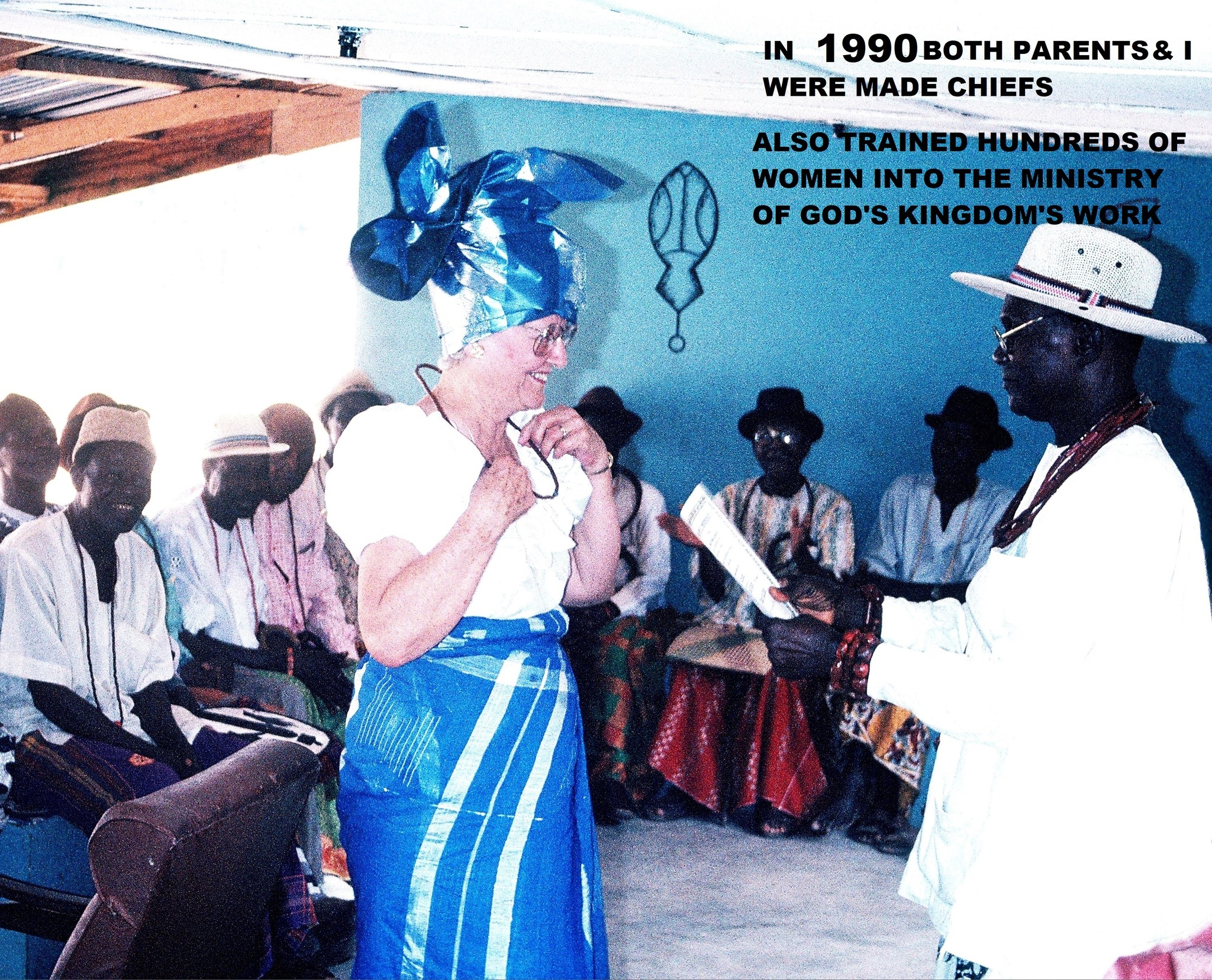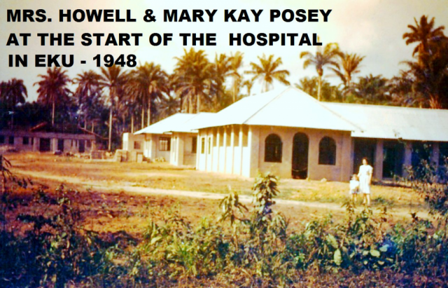 In 1990, I was soo Excited to receive an Invitation from the Chiefs of Eku, Nigeria, to Come back to my Home, for an 40th Anniversary of the Eku Baptist Hospital. Commemorating the arrival of the first doctor to come. There were so many Government dignitaries, High Chiefs, Amazing Dancers, Singers, and even got very excited about some of my old childhood dear Friends that attended. We even saw, way off towards the back, a large group of “Juju” witchcraft dancers, with their entourage, making lots of noise! At the Celebration, my Mother was honored to cut cake, because my Parents: Rev. Dr. E. Milford and Katharine (RN) Howell, had started the Hospital in 1944. There was a need for something bigger, so Dad, with the Eku people, started the Hospital buildings in 1945, which was dedicated in 1950. – What great Joy I had, because, this is where I was born and raised, and I was finally able to take my Husband, Fred Posey, back to see my Home and the people that I had missed so dearly !!! – The Great Chiefs of Eku honored my Dad, Mother, and I to be Chiefs of Eku and had another great “Cola Nut Celebration” for us (a Covenant of Forever Friendship). – Dad got to preach at several church, even at First Baptist Church of Eku that he built in the late 1940’s, and Deacon Atigari got to interpret for him, as he did in the old days – What thrilled my Dad even more was when a large group of Pastors that Dad had trained and worked with for years (1943-1964), All came to greet and Honor him after all these years – What a Marvelous time of embracing, praying, and even tears of joy – Oh Glory to You Lord Jesus !! We took a trip over to my first home by Market, where Mother started the first Clinic. The second Clinic was near where First Baptist is now. – At this point in 1990, the Hospital was still going strong because the Missionaries that lived there did not leave Eku until 2000. Then it started going down fast !!! — One of the days we were there, Several Nigerian Reporters came, from all over, to interview and take pictures of my Mother, and that was very interesting – Lots of History that they had never heard !! We had an wild experience going and coming, to meet with the people of Oginibo that is way on the other side of Warri. It was a big surprise – In the old days, we would have to go a little way by car, then by Bike, then we would put our bikes in a Canoe, then Bike again, then by foot, and that would take All day ! This time it only took one hour because the oil company built a bridge. We got a late start to go there, and all the great numbers of people had been waiting All day for us, but would Not go home till we arrived. There were lots of gifts, of chickens, stalks of bananas, Large yams, fruit, and so much else to bless us with ! After Dad preached, it All went home with all 7 of us, in a tiny little Peugeot car – Even the Live chicken, with its wings flapping all the way back – Yikes, that was noisy, but lunch was great the next day for us all !! – Also invited for Hospital Anniversary, were other Missionaries that had also worked there through the years: Miss Mary Evelyn Fredenburg RN (2nd nurse), Miss Betty Larimer RN, Dr. Paul and Ida Cullen (2nd Doctor), and Dr. Abell’s wife, Betty Abell. We were there for the full month of March, going from place to place preaching, and having lots of people come in to Greet us, and have prayer…. Oooh what a rich blessing, and I will never ever forget it – Oghene Tega – God is Worthy to be Served and Praised !!! – – Next week you will see what broke our hearts and caused us to answer the call to go back home to Eku, in 2005, as Missionaries, for the last 18 years, To help “Change Lives for Eternity” !! —- Uriri Dia Vwo Ko Oghene (all glory should remain with God) – We ruru mamo ooo (the strongest thanks I can give Him) – Iseee !!!!!